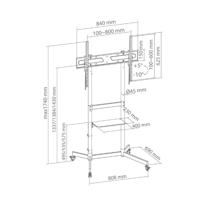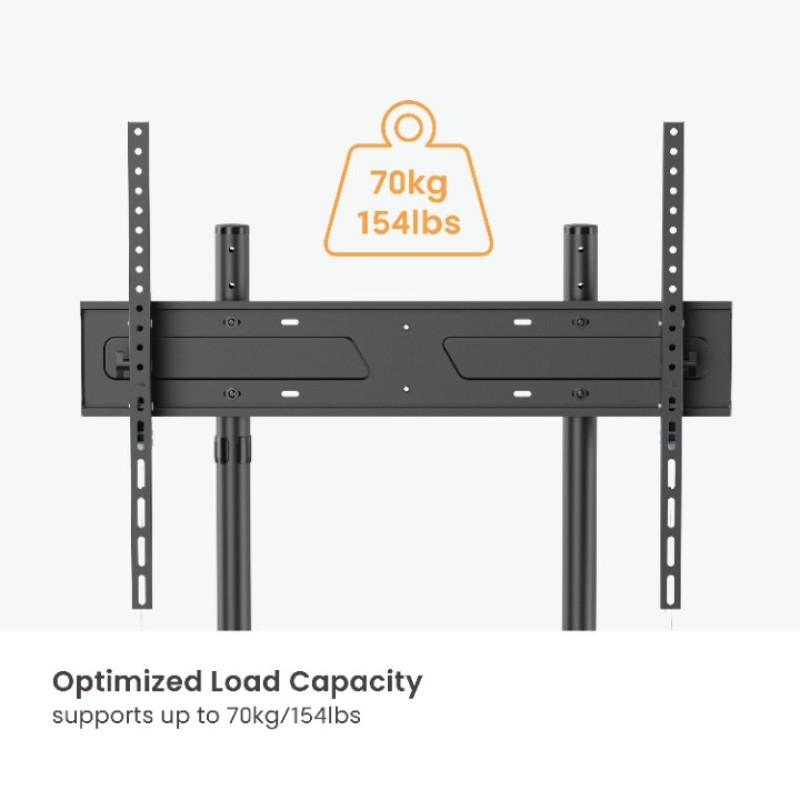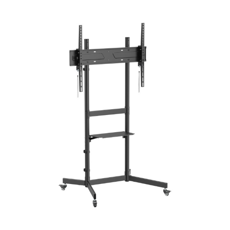 Povećajte fleksibilnost postavljanja televizora uz mobilni podni nosač za TV dijagonale od 55" do 100". Stabilna konstrukcija i kotačići omogućuju jednostavno premještanje, dok podesiva visina i nagib osiguravaju optimalan kut gledanja.